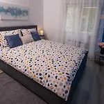 Apartmán Point nabízí kompletní kuchyni i pokoje s balkónem a jídelnou. Hosté mohou navštívit Koupaliště Valkane, 2,3 km daleko nebo Augustův chrám, 1 km od ubytování.